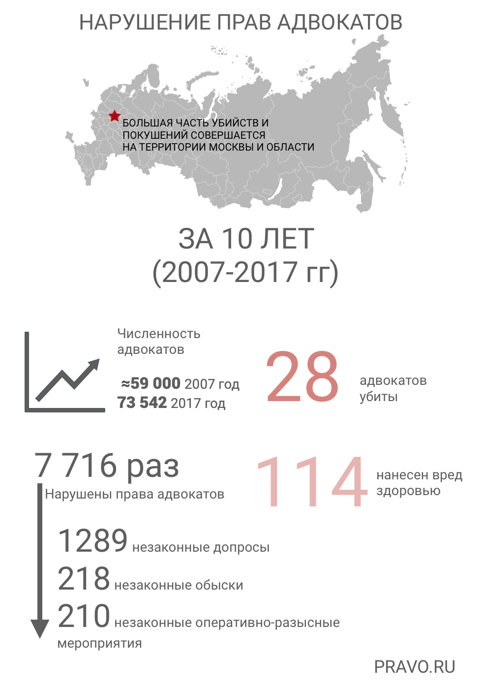 Основной «горячей точкой» были (и остаются) Москва и Московская область. В 2015 году ФПА в отчете говорит: «Всего за последние 13 лет от преступных посягательств погибли 40 адвокатов, раскрыто только девять преступлений». Одно из них – убийство Маркелова.